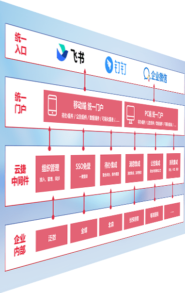 对协作平台提供支持服务,,,,支持企业应用与协作平台对接,,,包含组织同步、、、、消息集成、、、、待办集成等。。。。支持目前主流的协作平台:钉钉、、、、企微和飞书。。。。